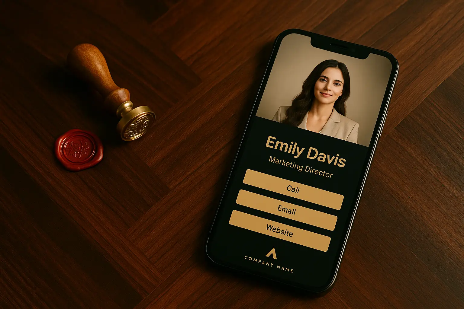 No app needed. LinkMyCard works on any smartphone or desktop — just open the link in a browser.